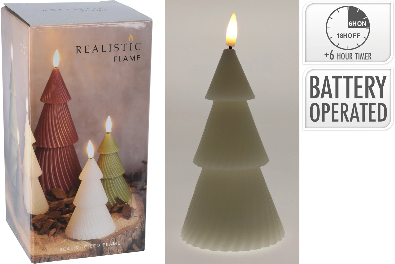 Voeg een vleugje elegantie en warmte toe aan je kerstdecoratie met deze 15 cm hoge ivoorkleurige LED-kaars in de vorm van een boom. Deze sfeervolle kaars is perfect voor het creëren van een feestelijke ambiance, waardoor je huis verandert in een gezellige, uitnodigende ruimte tijdens de kerstperiode.
