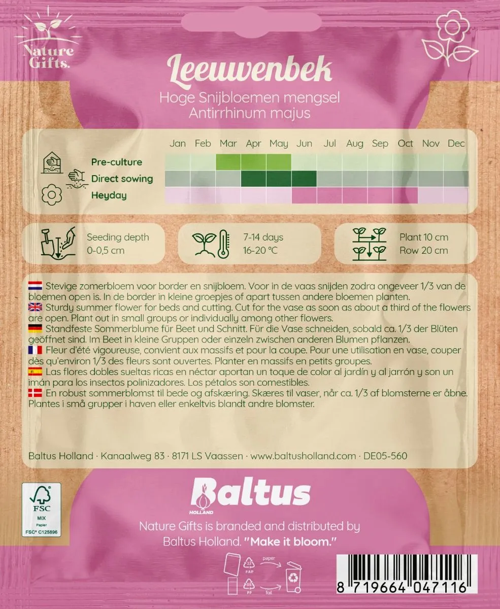 Dit mengsel van de leeuwenbek is een rijkbloeiende perkplant die bij uitstek geschikt is voor borders. Je zaait ze in maart of april voor een bloeiperiode van juli tot september. Stevige border en snijbloem.