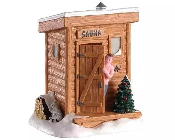 Deze Lemax sauna is een leuk item om aan je kerstdorp toe te voegen. De bewoner die in de sauna zit wil even voelen hoe koud het is buiten, maar bedenkt zich al snel dat het binnen in de sauna toch wel lekkerder is. De sauna heeft een aantal leuke kleine details, er staat zelfs een kleine kerstboom buiten! De afmetingen van de Lemax sauna zijn als volgt: 9 x 10,5 x 8cm.