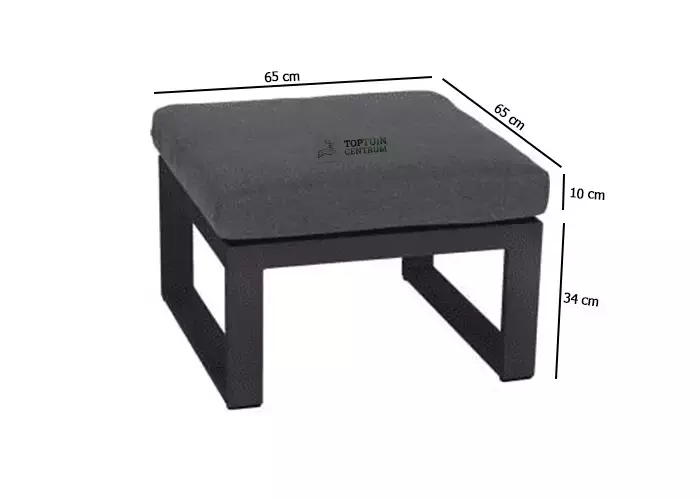 De hocker heeft afmetingen van 65 x 65 x 34 cm en is gemaakt van duurzaam aluminium, waardoor hij lichtgewicht is en bestand tegen verschillende weersomstandigheden. Het antracietkleurige frame voegt een eigentijdse uitstraling toe aan je terras of tuin, terwijl de grijze kussens met een dikte van 10 cm zorgen voor een comfortabele en ondersteunende zitervaring.