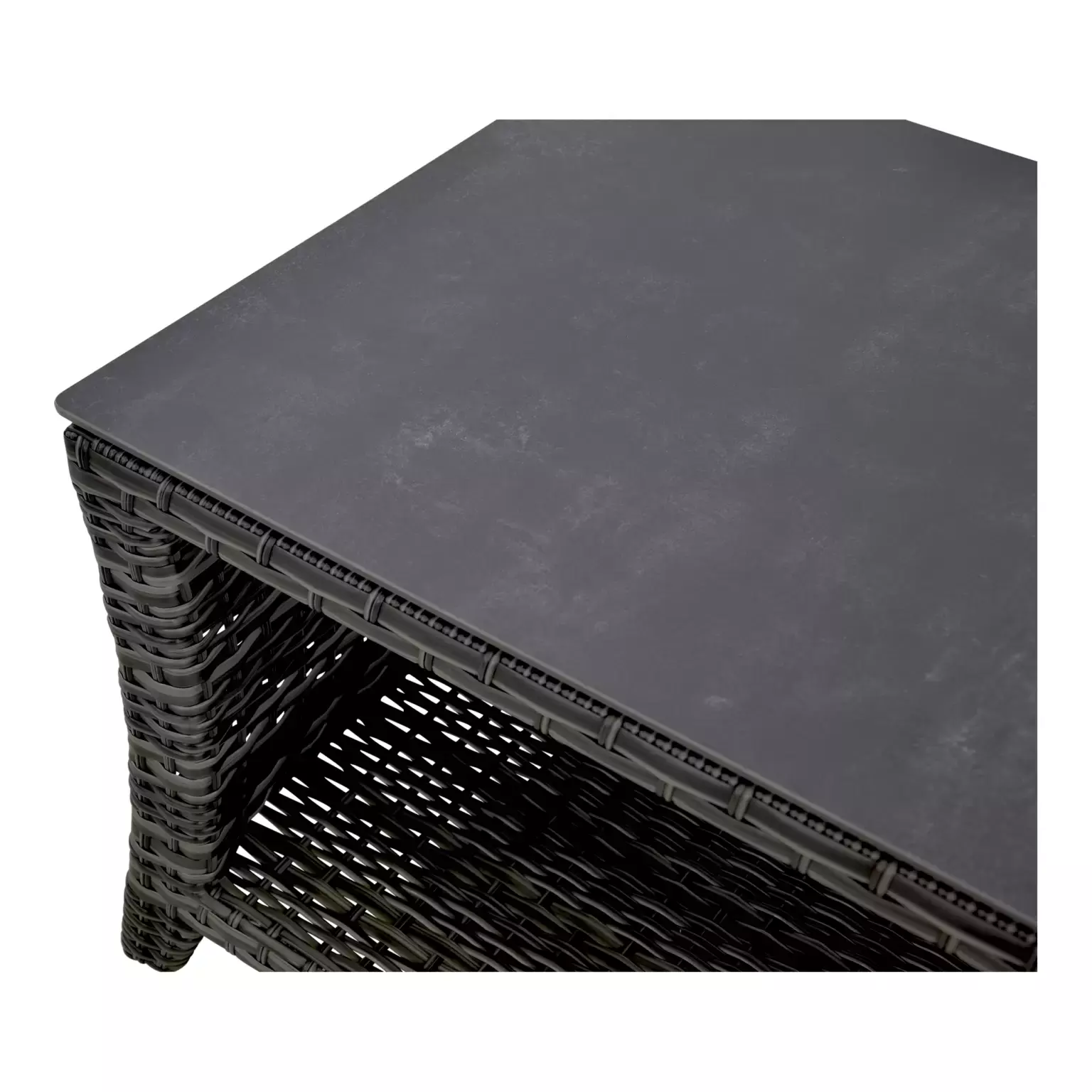 Upgrade je buitenruimte met de Lounge Koffie Tuintafel Soho Forte, een verfijnde toevoeging die zowel stijl als functionaliteit combineert. Met zijn eigentijdse design en robuuste constructie is deze tafel een blikvanger in elke tuin of op elk terras. Het aluminium frame in antracietkleur, gecombineerd met het gevlochten wicker onderstel, biedt niet alleen een industriële uitstraling maar ook duurzaamheid die bestand is tegen diverse weersomstandigheden.
