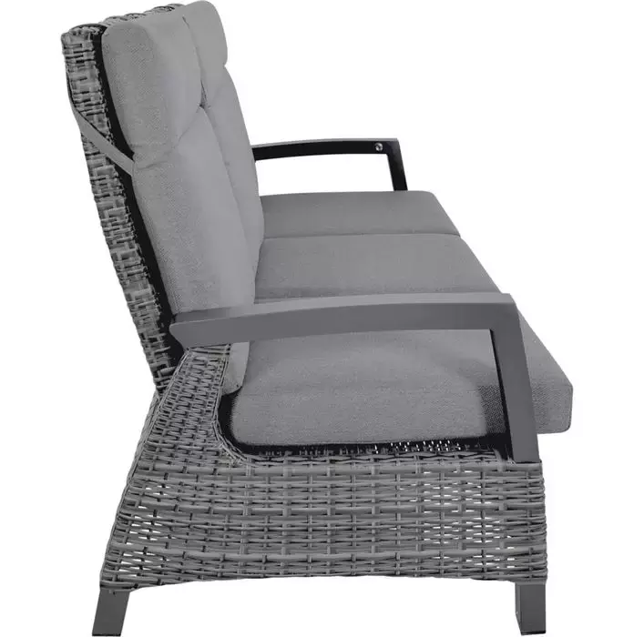 Creëer een oase van comfort en stijl in je tuin met de Loungebank Prato Forte. Deze ruime bank biedt plaats aan drie personen en is gemaakt van hoogwaardig aluminium en wicker, wat niet alleen duurzaamheid garandeert maar ook een moderne uitstraling geeft. De combinatie van aluminium en wicker maakt de bank bestand tegen alle weersomstandigheden, zodat je het hele jaar door kunt genieten van comfortabele zitplaatsen in de buitenlucht.
