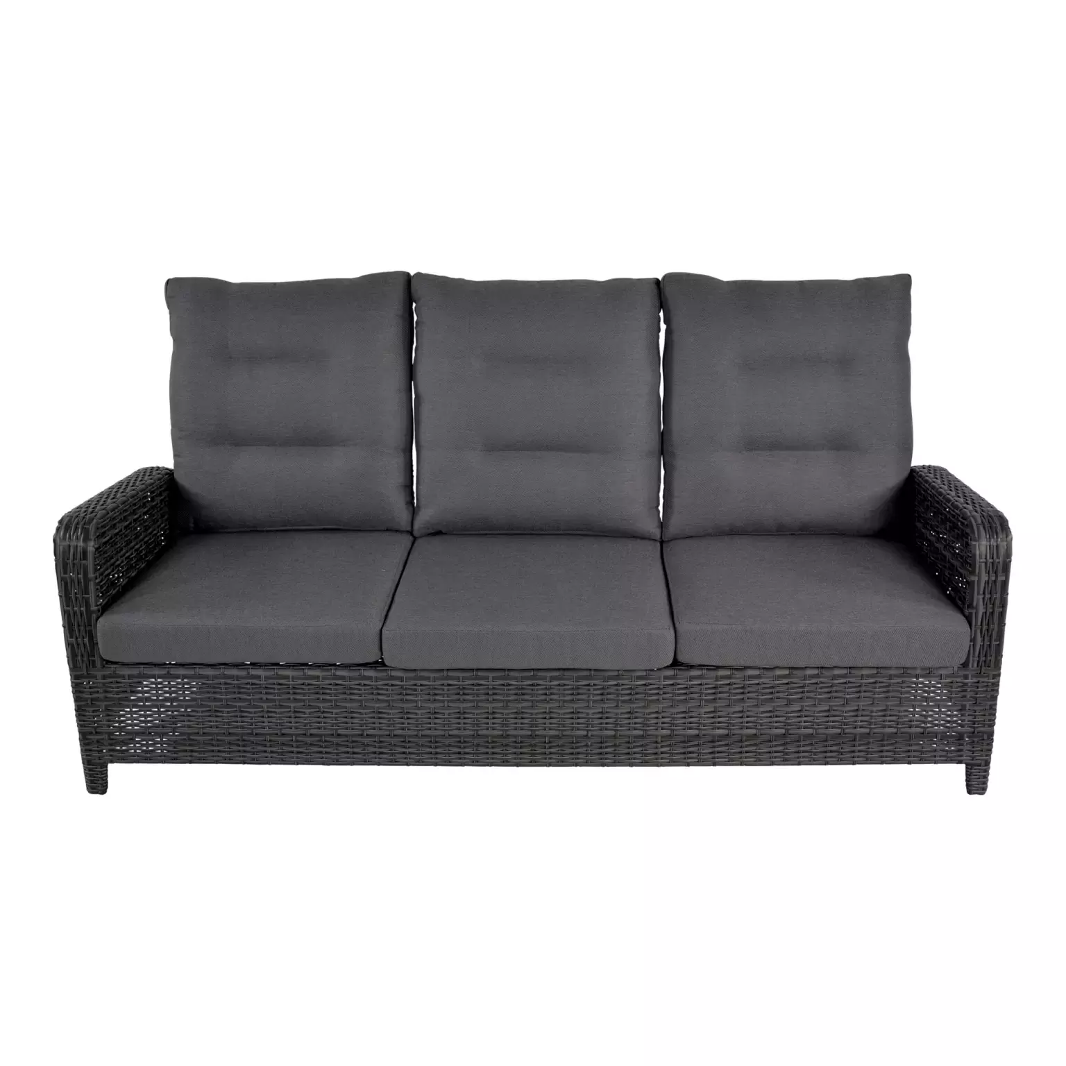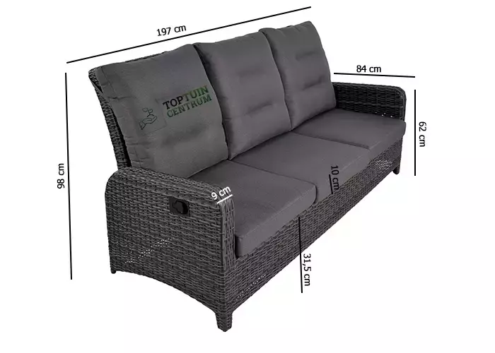 Met afmetingen van 197 x 84 x 98 cm biedt de Loungebank Soho Forte voldoende ruimte voor drie personen om te ontspannen. De zithoogte van 31,5 cm (exclusief kussens) en de breedte van de armleuning van 9 cm zorgen voor een comfortabele en ergonomische zitervaring. De bank wordt geleverd met dikke zitkussens van 10 cm dikte, uitgevoerd in een stijlvol antraciet, die niet alleen een luxe uitstraling bieden maar ook bijdragen aan het comfort tijdens lange zomerdagen.