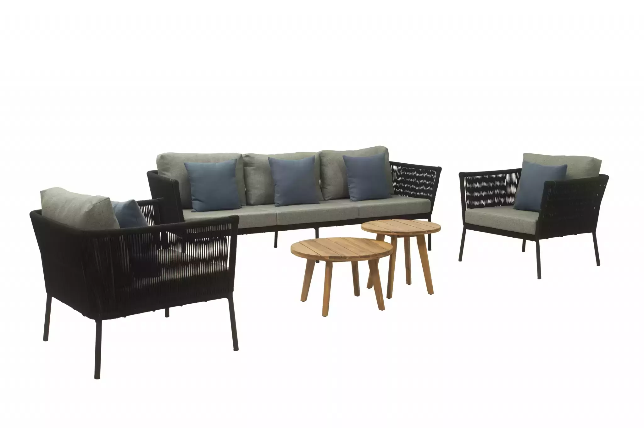 - Afmetingen3-ZITSBANK: 224X74XH67 CM STOEL: 83X74XH67 CM STOEL: 83X74XH67 CM TAFEL: Ø60XH35 CM TAFEL: Ø50XH42 CM