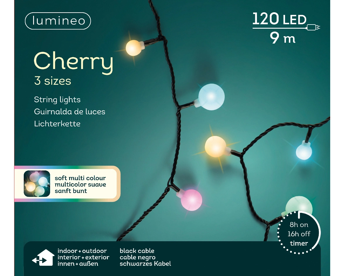 Lumineo cherry Ledverlichting 9m 120led soft multi colour