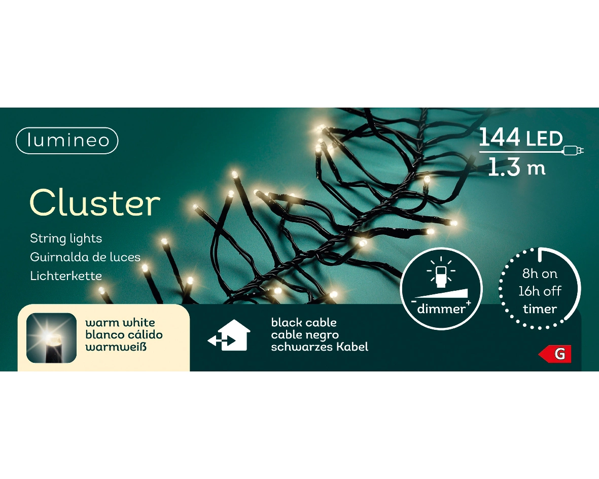 Lumineo clusterverlichting 144led 1.3m Warm wit