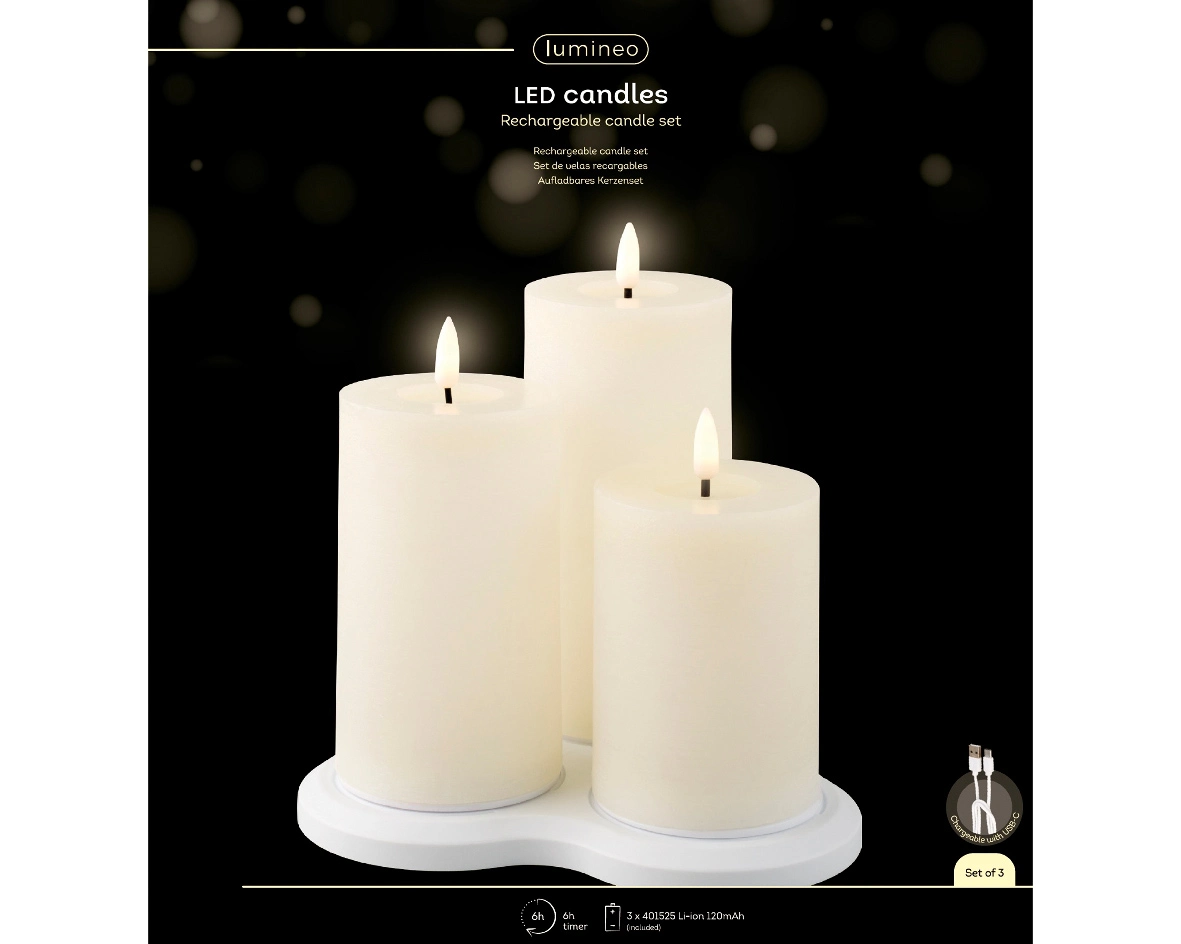 - Set: Bevat 3 oplaadbare LED kaarsen.