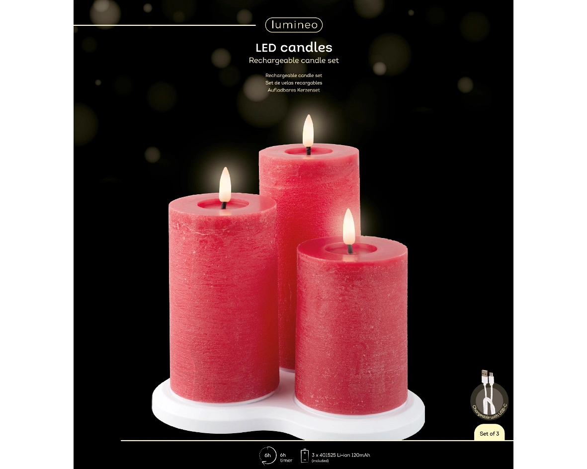 Lumineo LED Kaarsen Oplaadbare rood/Warm wit 3st
