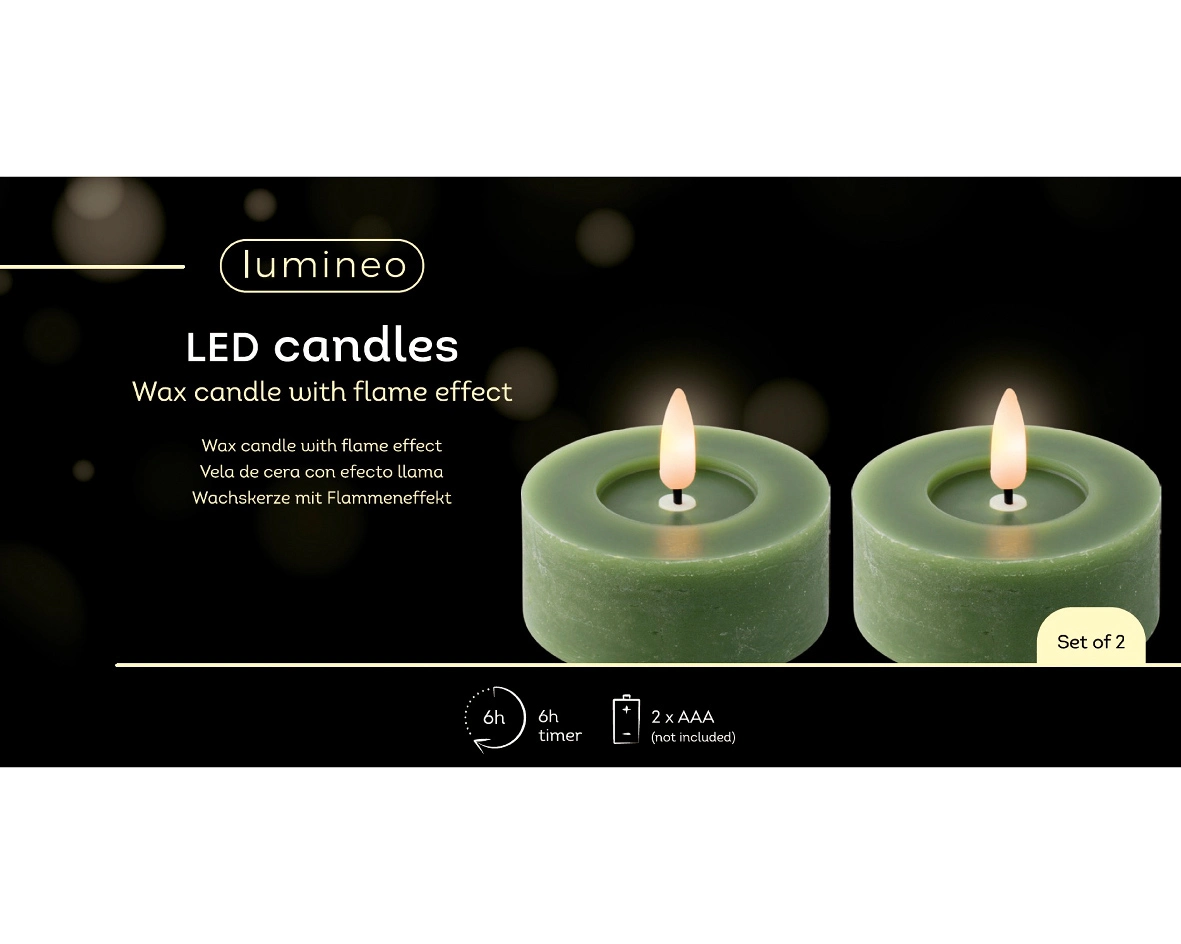 Lumineo LED Theelicht Groen/warm wit 7x3cm 2st