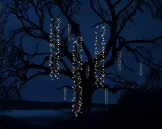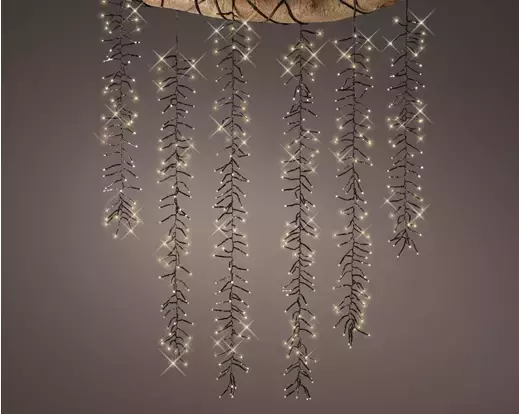 Lang en grote lichtsnoer met luxe afwerking. De decoratie wordt verlicht door 480 LED's met een warm wit licht. Het decoratieve element geeft je buitenruimte een warme sfeer tijdens de feestdagen