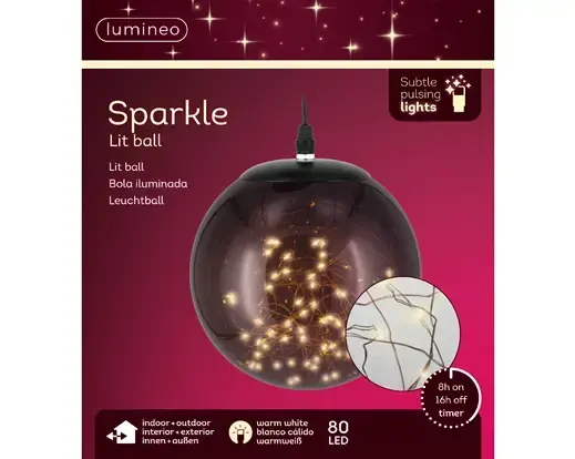 Schrijf zelf een recensie over "Lumineo micro led bal d18cm-80l zwart/warm wit"