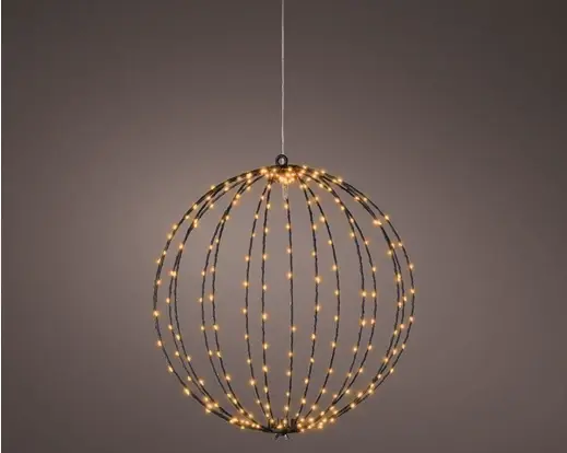 De Lumineo Micro LED Framelight Ø 38 cm is een elegante en sfeervolle bolvormige buitenverlichting met een zwart metalen frame en 240 micro-LED‑lampjes in klassiek warm wit licht. Met een compact formaat en heldere verlichting is dit model ideaal voor zowel binnen- als buitengebruik.