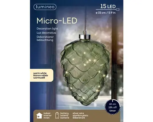 Schrijf zelf een recensie over "Lumineo microled dennenappel 15cm groen/warm wit"