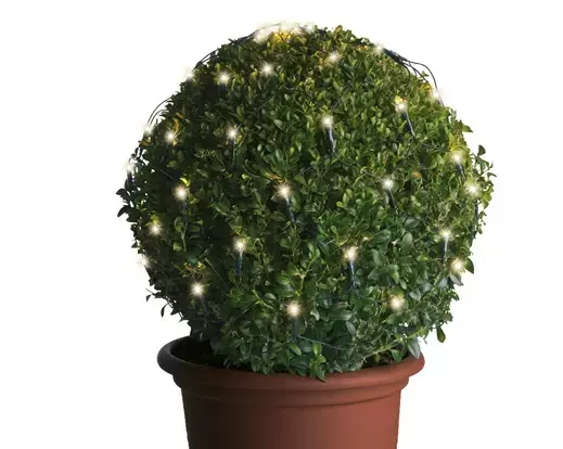 Verlicht je buxus of andere ronde struiken met de sfeervolle Lumineo Netverlichting LED, speciaal ontworpen voor een perfecte pasvorm rond een buxus met een diameter van 50 cm. Met 80 warm witte LED-lampjes creëer je eenvoudig een gezellige en uitnodigende sfeer in je tuin, op je terras, of bij je voordeur.