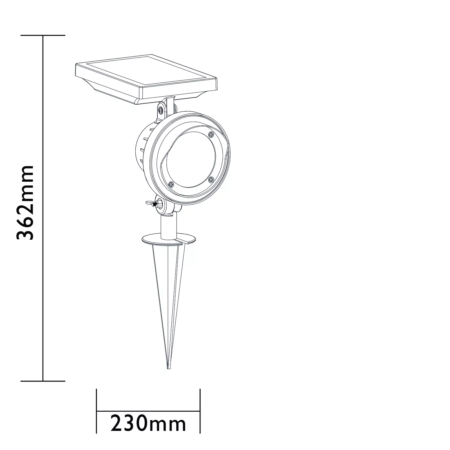 De spotlamp Texas is een aluminium spot, voorzien van een warm witte LED. Bij de Luxform Texas lamp zit een grondspies, hiermee kun je de lamp gemakkelijk in de grond steken. Het fijne aan deze Luxform lamp is dat zowel de kop van de lamp als het solar paneel allebei versteld kunnen worden, zo kan er optimaal gebruik gemaakt worden van de verlichting. Schijn de lamp op een boom of struik, zo worden deze mooi uitgelicht in het donker. De Texas grondlamp heeft een intelligent energiemanagement, hij verdeelt zijn energie over 8 branduren. Mocht het nou een aantal dagen achter elkaar slecht / donker weer zijn, dan kan het wel eens zo zijn dat de verlichting minder goed oplaad. Hiervoor heeft Luxform een oplossing, er zit een USB-kabel bijgeleverd, hiermee kan de lamp weer in 110 minuten volledig worden opgeladen.