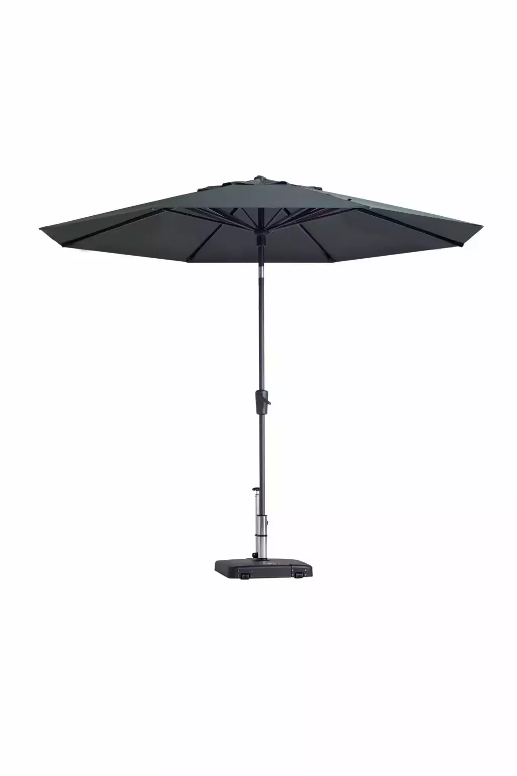Met het praktische draaimechanisme open en sluit je de parasol moeiteloos. De parasol wordt ondersteund door een stevig antracietkleurig frame en 8 aluminium baleinen, wat zorgt voor stabiliteit en duurzaamheid. Voor het eenvoudig opbergen wordt de parasol geleverd met een PE transporthoes. Voor langdurige bescherming raden wij echter een ademende beschermhoes aan.