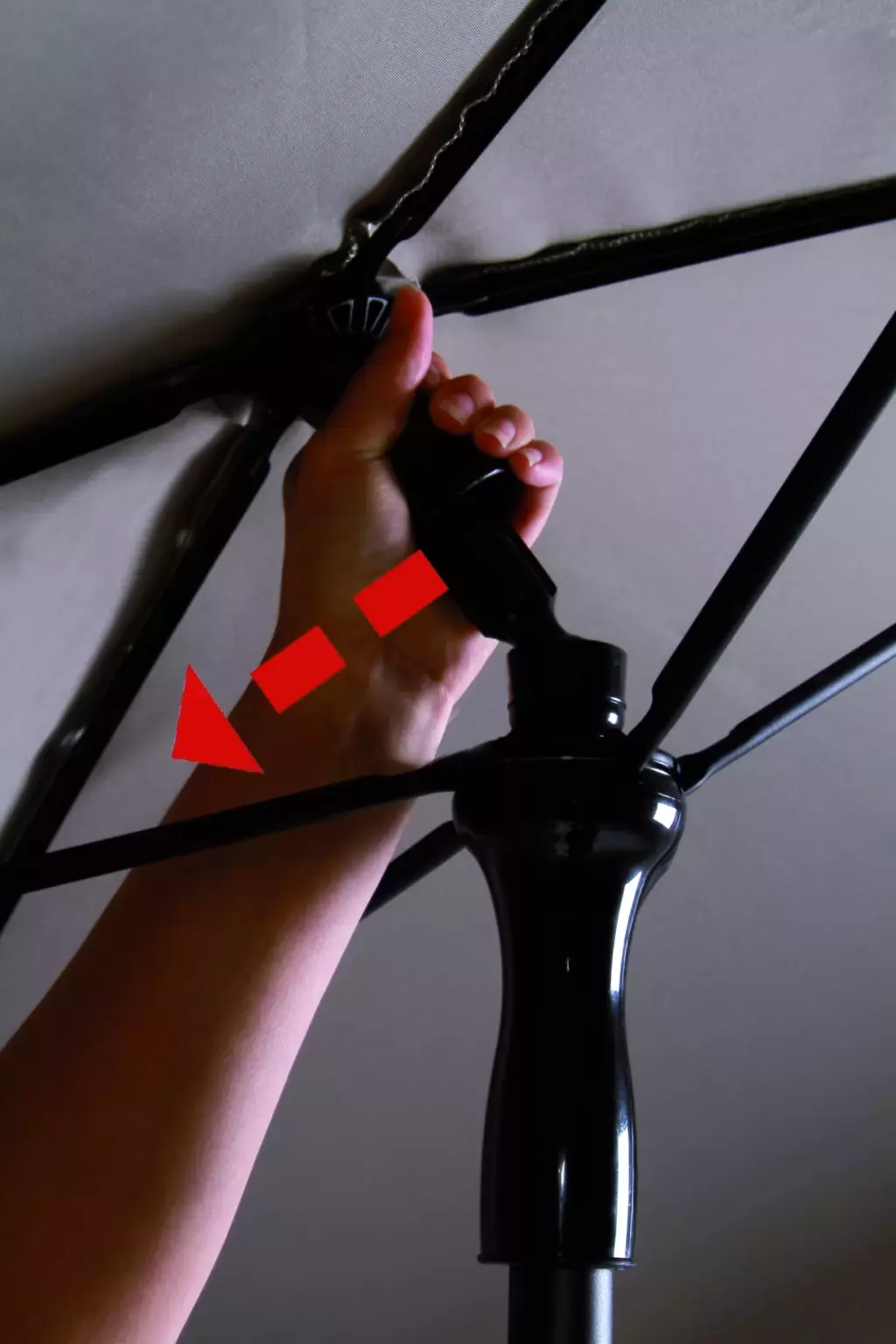 Dankzij het draaimechanisme kun je de parasol eenvoudig openen en sluiten. Het kantelmechanisme biedt flexibiliteit, zodat je de parasol kunt aanpassen afhankelijk van de positie van de zon voor optimale schaduw. -