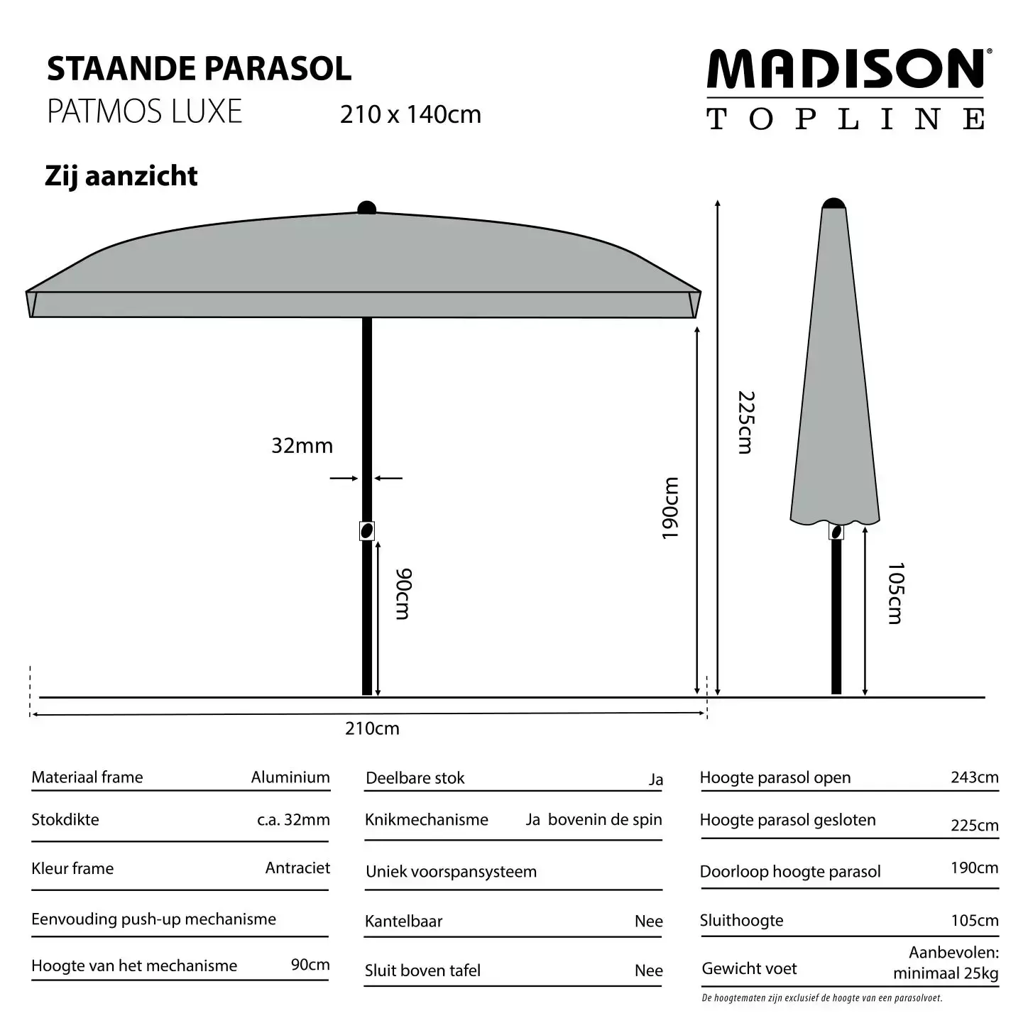 Schrijf zelf een recensie over "Madison Parasol Patmos luxe 210x140cm brick rood"