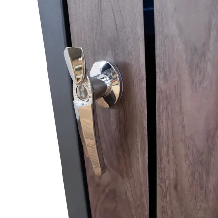 De deur heeft een stijlvolle walnootprint, waardoor de containerbox ook een nette uitstraling in de tuin of op het erf heeft. Dankzij de 2 gasveren en de nylon scharnieren opent en sluit de deur soepel en veilig.