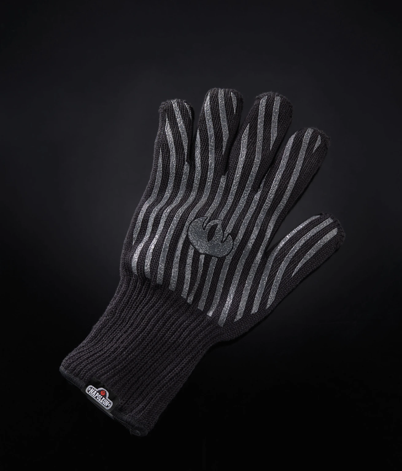 De hittebestendige GRILL-handschoen van Napoleon biedt bescherming tegen temperaturen tot 250°C, ideaal voor binnen- en buitengebruik, met aramide vezels uit de luchtvaartindustrie voor duurzaamheid, een zachte katoenen voering voor comfort, grijze siliconen grips voor een stevige grip, omkeerbaar ontwerp voor links- en rechtshandige gebruikers, en is wasbaar in de machine voor eenvoudig onderhoud.