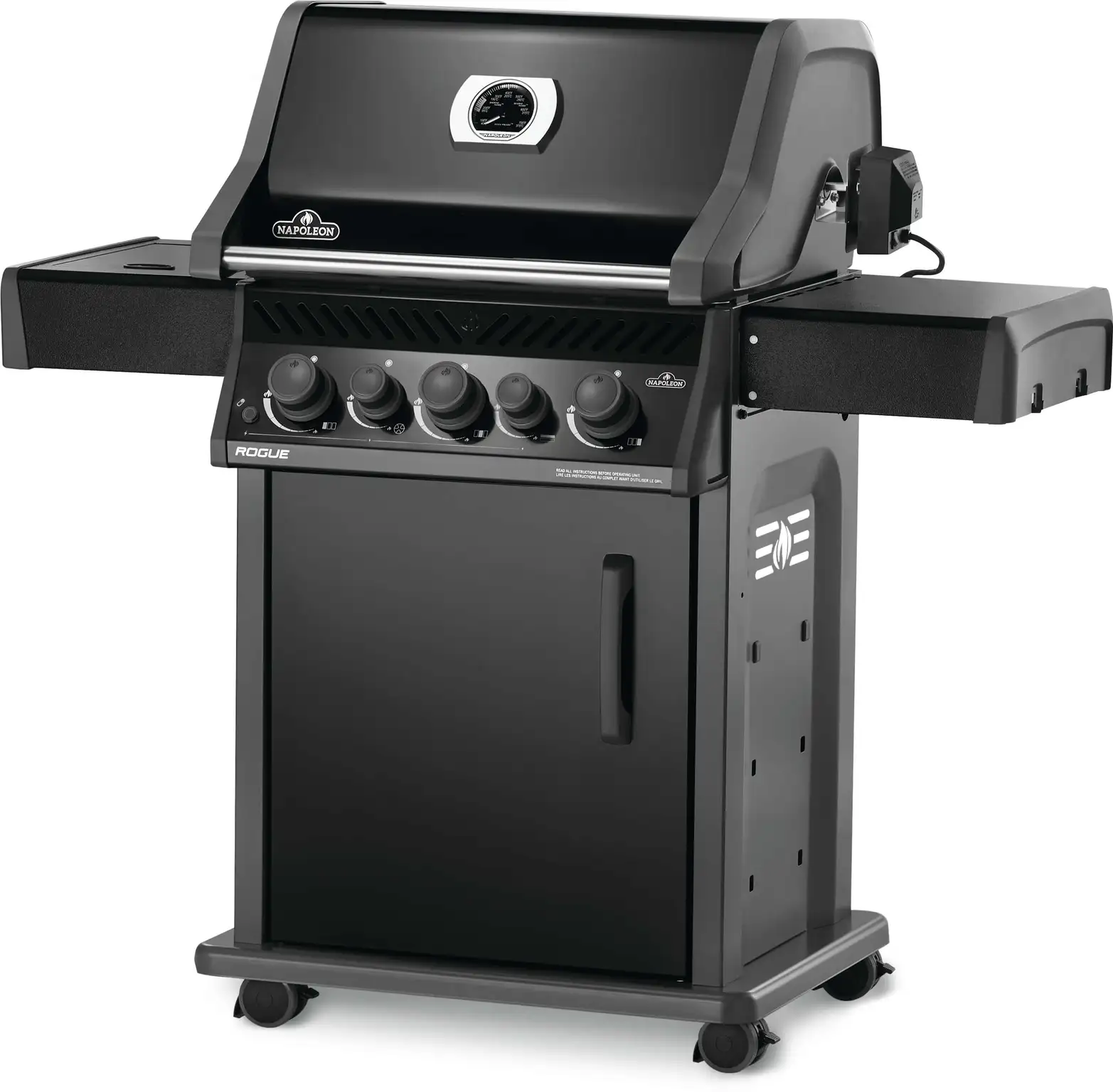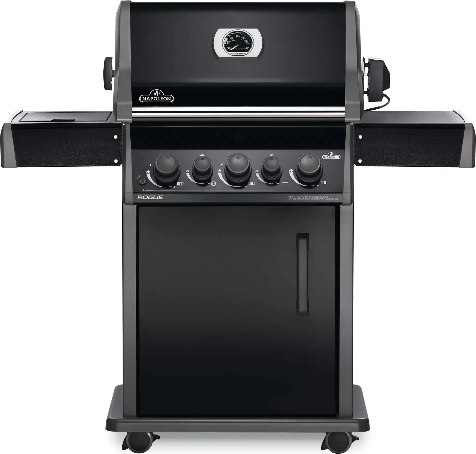 Maak kennis met de zwarte Rogue® 425 gasbarbecue van Napoleon met zijbrander. Geniet van malse seizoenslekkernijen op onze iconische Wave roestvrijstalen grillroosters, terwijl de drie RVS-branders de warmte precies daar leveren waar nodig. Met een grilloppervlak van 60 × 45 cm en een aparte zijbrander, bereid je moeiteloos heerlijke gerechten. Deze barbecue, met een onderhoudsvriendelijk zwart porseleinen deksel, enkele deur en geïntegreerde opslagruimte, past perfect in elk buiteninterieur. Dankzij de vergrendelbare wieltjes en inklapbare zijtafels kun je de Rogue eenvoudig verplaatsen en opbergen. Een ongeëvenaarde veelzijdigheid en hoogwaardige componenten tegen een betaalbare prijs.
