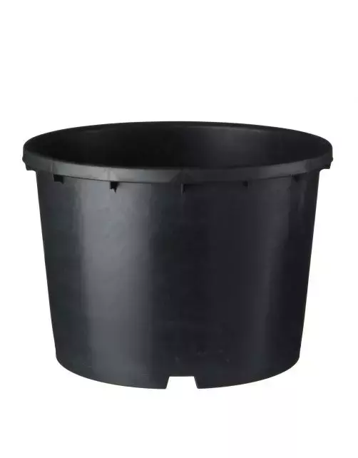 Zwarte plantcontainer gemaakt van kunststof met zijsleuven. Het is een sterke plantcontainer, de inhoud is 12L.