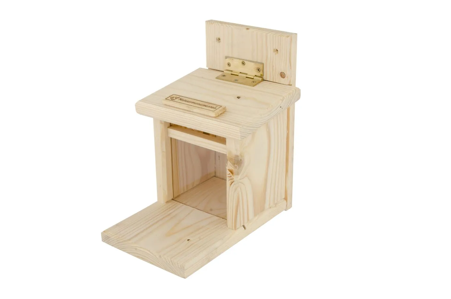 Het Natuurmonumenten Eekhoorn Voederhuis is speciaal ontworpen om eekhoorns hun eigen voederplekje te geven. Eekhoorns staan erom bekend de voedersystemen voor tuinvogels te verstoren, omdat ze ook graag van het voer willen genieten. Dit handige voederhuisje biedt de eekhoorn een plek waar hij ongestoord kan eten. Het slimme ontwerp bevat een dekseltje dat het voer beschermt, maar dat door eekhoorns eenvoudig kan worden geopend. Het voederhuis is gemaakt van duurzaam vurenhout en afgewerkt met een waterbestendige, blanke lak op waterbasis, waardoor het geschikt is voor gebruik in de buitenlucht. Dankzij het eenvoudige ophangsysteem kun je het gemakkelijk op een gewenste plek in de tuin bevestigen, zodat eekhoorns snel hun weg naar het voederhuisje zullen vinden.