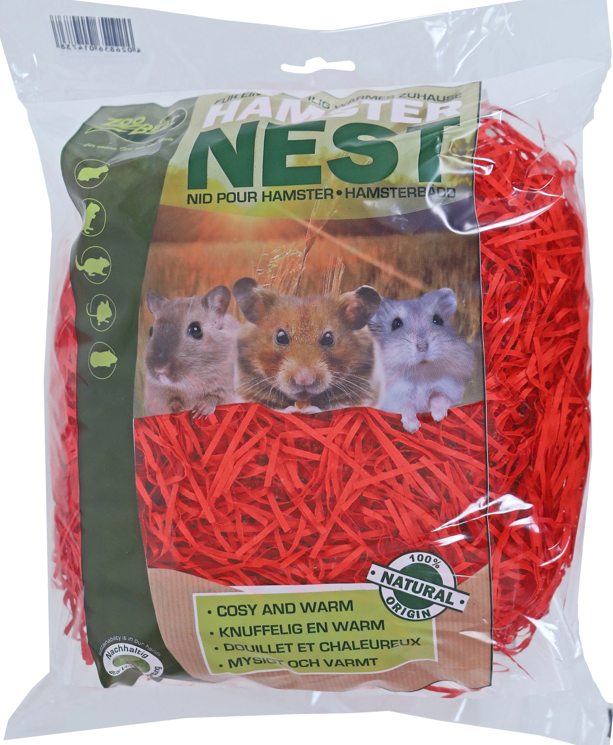 Zoobest hamsternest papier biedt een veilige en eetbare nestoptie voor hamsters en andere knaagdieren. Het nest is volledig gemaakt van zachte papierstroken, waardoor het comfortabel en knus is voor uw huisdier. Met een keuze uit 4 verschillende kleuren en beschikbaar 100 gram - kunt u het nestmateriaal aanpassen aan de voorkeuren en behoeften van uw huisdier. Het feit dat het nest volledig uit papier bestaat, maakt het niet alleen veilig voor uw huisdier om te gebruiken, maar ook milieuvriendelijk. Zoobest hamsternest papier biedt een gemakkelijke en effectieve manier om een gezellige leefomgeving te creëren voor uw geliefde knaagdier.