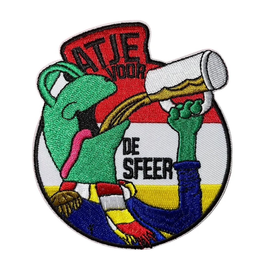 Wil jij je jasje mooier versieren en ben jij iemand die van een atje houd? dan is dit de juiste keuze. Het Oeteldonkse embleem met een kikker die een atje doet maakt het jasje gelijk kleurrijker en gezelliger en dus zal je ook gelijk opvallen. De Oeteldonk emblemen zijn DE versiering van je Oeteldonk jasje. Veelal kom je de kroegen niet eens binnen als je niet een aantal Oeteldonk emblemen op je jasje hebt zitten. Van oudsher worden emblemen op de jasjes genaaid maar tegenwoordig beschikt het overgrote deel van de emblemen van een strijk laag.