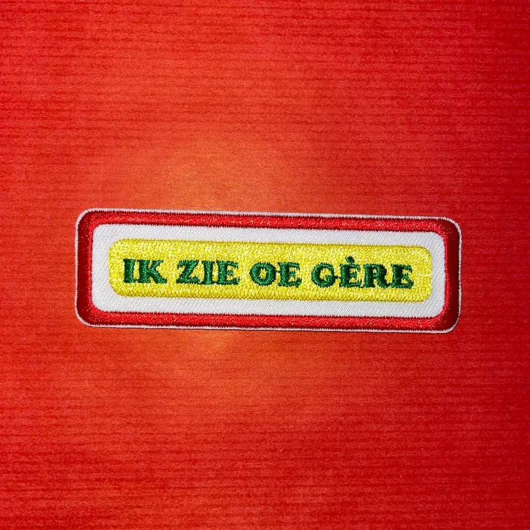 Voeg een warme noot toe aan je Oeteldonkse outfit met het embleem met de tekst 'Ik zie oe gère'. Dit iconische symbool, met zijn levendige kleuren en hartverwarmende ontwerp, belichaamt de liefdevolle en gastvrije sfeer van Oeteldonk. Draag het met trots en omarm de innige tradities van dit bruisende carnavalsfeest!