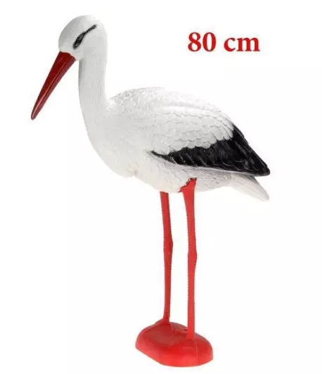 Een levensechte ooievaar op ware grootte voor in de tuin. Deze ooievaar kan een leuke tuindecoratie aan de vijver of de aankondiging van een blije gebeurtenis zijn.
