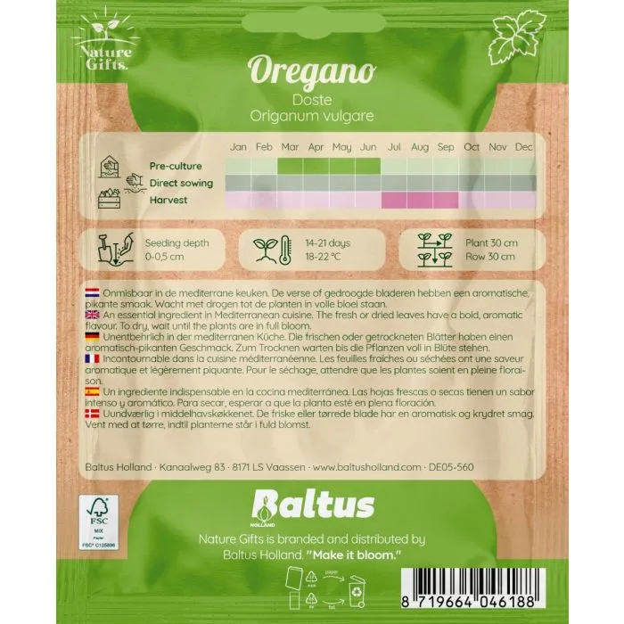 Kweek je eigen aromatische kruidentuin met deze Oregano doste. Oregano is een onmisbare klassieker. Zaaitijd: maart - juni. Bloeitijd: juli - september