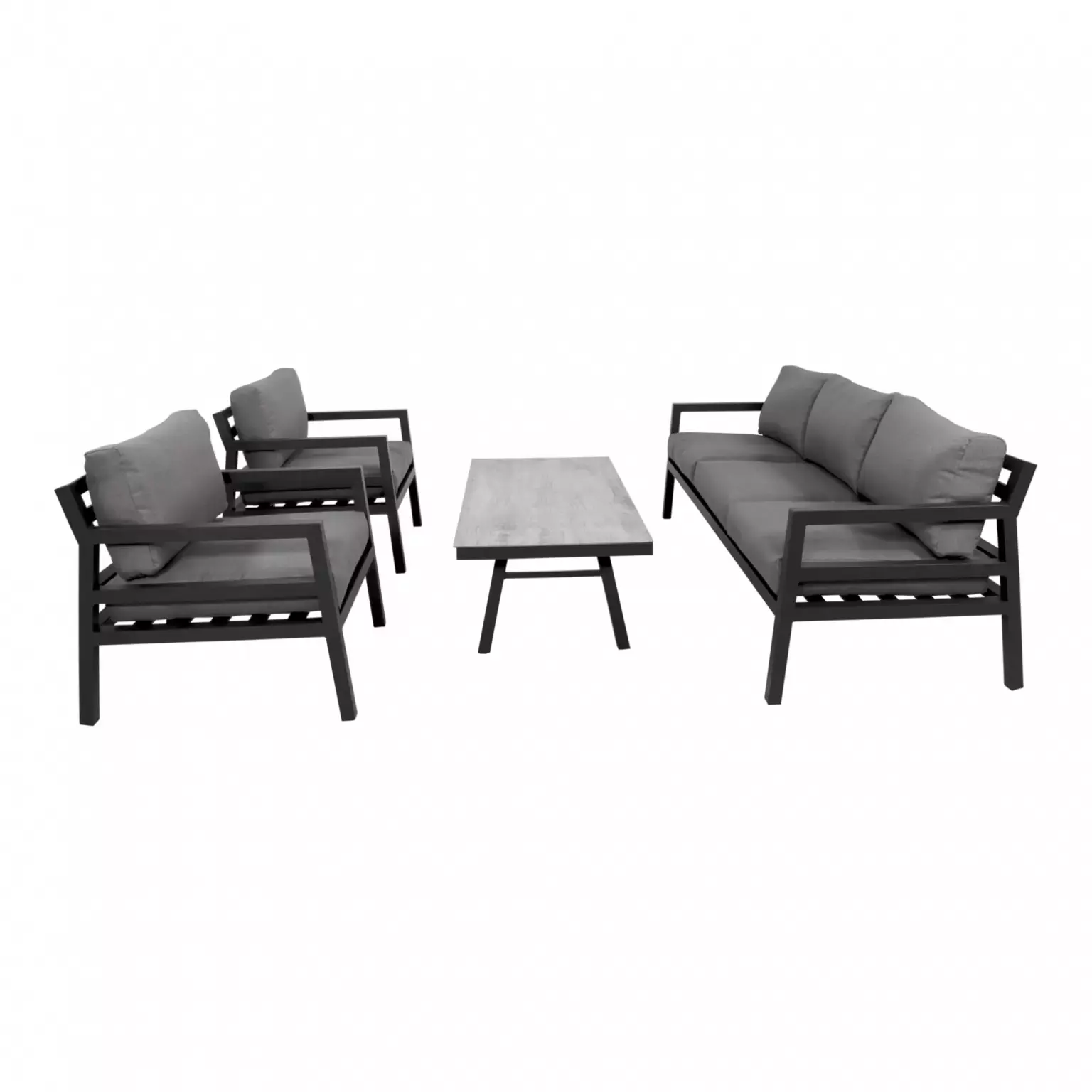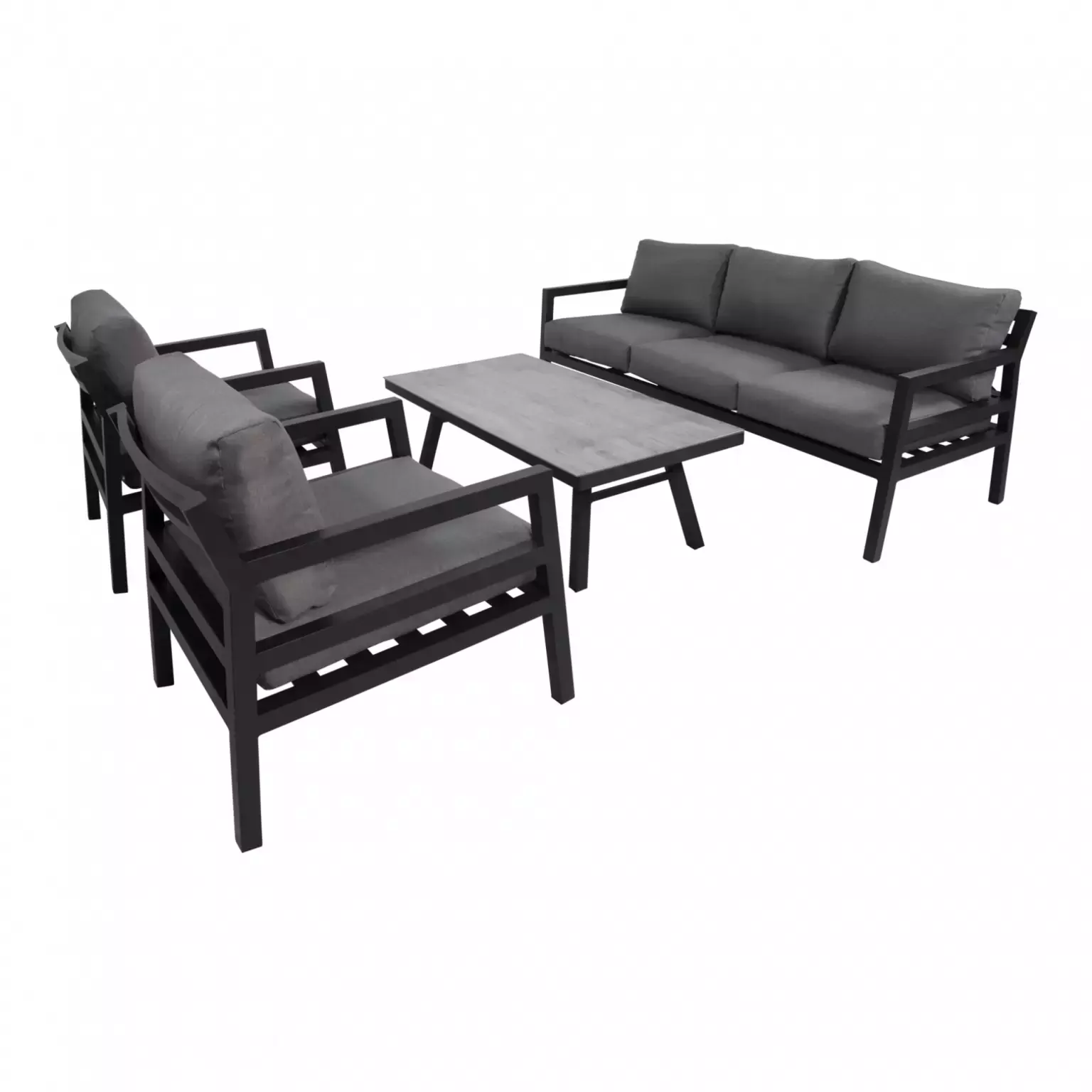 De Loungeset bilbao bestaat uit een 3-zits bank, 2 heerlijke stoelen en een tafel.