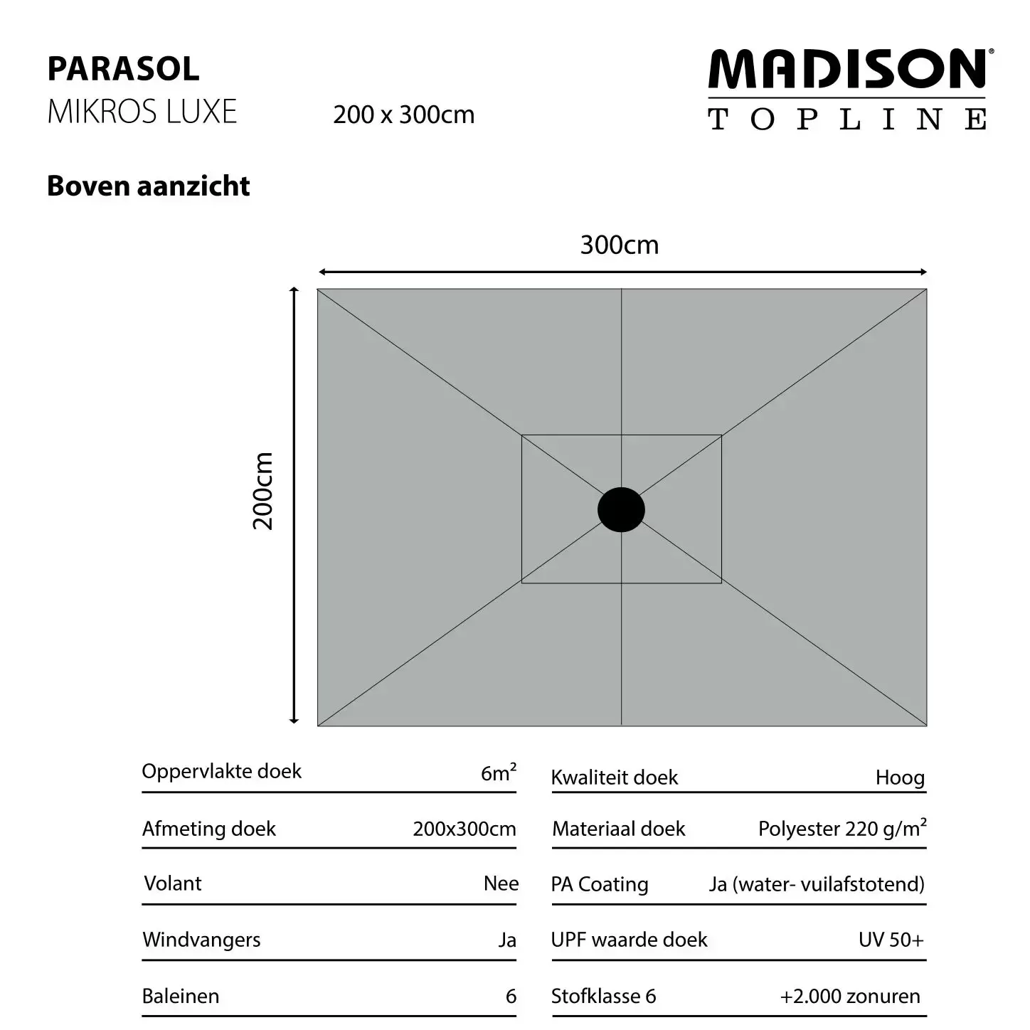 Schrijf zelf een recensie over "Parasol Mikros Luxe Rechthoek 200x300cm - Ecru"