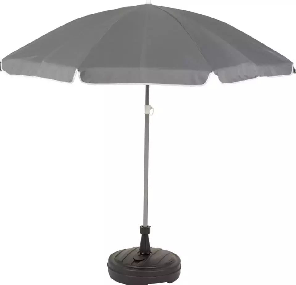 Een stevige parasolvoet. Voorkomt het omwaaien van de parasol door de parasolvoet te vullen met water of zand. Deze ronde parasolvoet is geschikt voor een parasol steel van 18 tot 32 millimeter.
