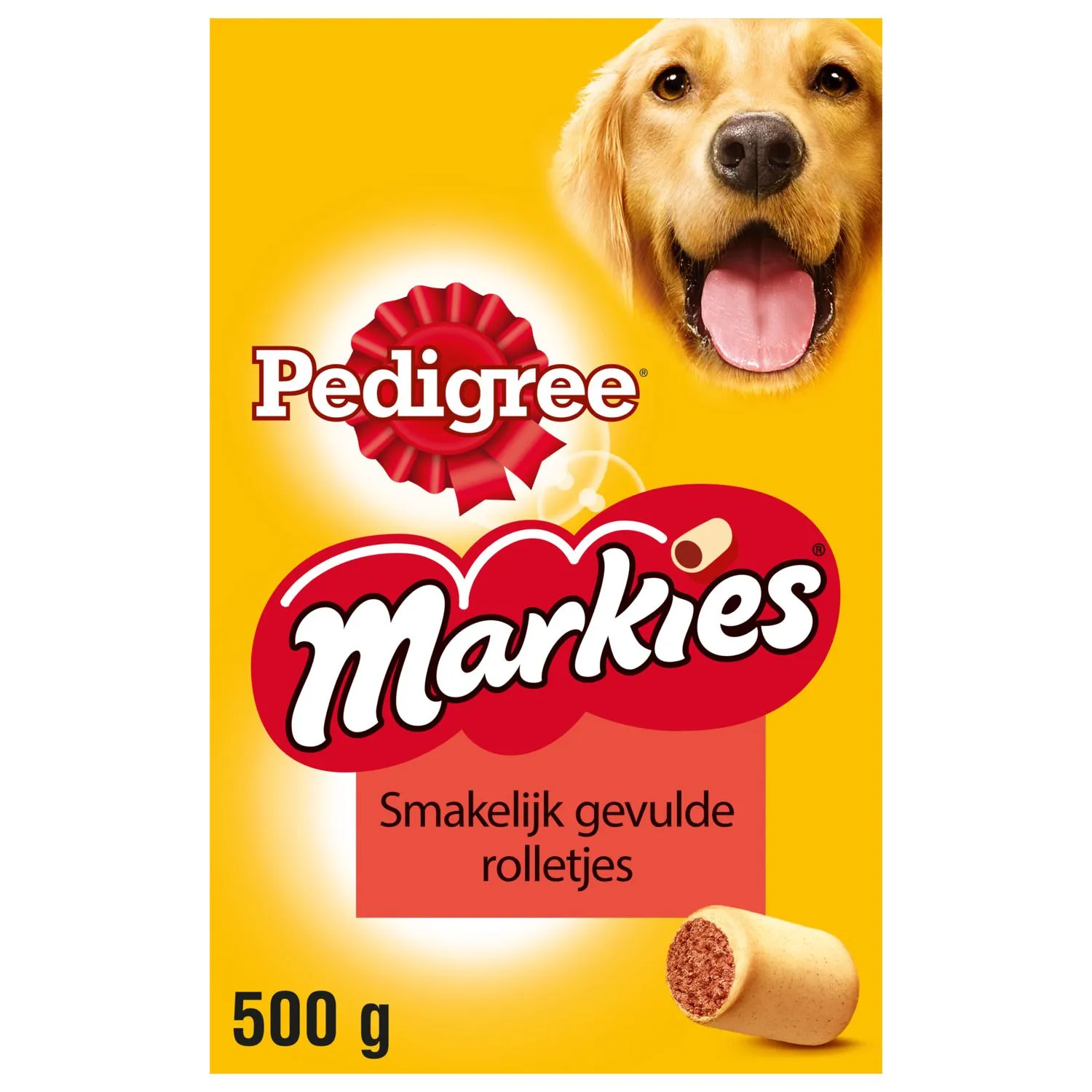 Maak het speelkwartier van je hond extra leuk en smakelijk met Pedigree Markies, krokante gevulde rolletjes die ideaal zijn om mee te rollen, gooien en vangen. Deze snacks zijn niet alleen lekker, maar ook voedzaam: de buitenkant is heerlijk knapperig, terwijl de binnenkant gevuld is met gezonde ingrediënten die bijdragen aan de gezondheid van je hond. Pedigree Markies bevatten calcium en fosfor, mineralen die essentieel zijn voor sterke botten en tanden. Daarnaast zijn ze verrijkt met omega 3, vitaminen en mineralen die de algehele conditie van je hond ondersteunen en het afweersysteem versterken. Dankzij de ronde vorm zijn ze gemakkelijk vast te pakken, waardoor ze ideaal zijn voor spelletjes en beloning tijdens de training.