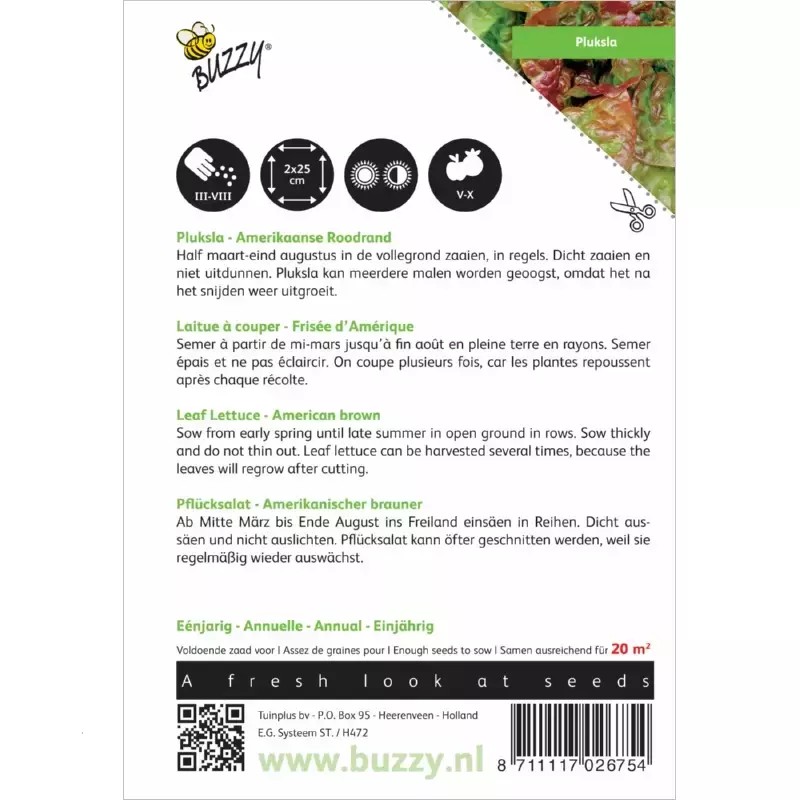 Pluksla - Amerikaanse Roodrand_x005F_x000D_ Half maart-eind augustus in de vollegrond zaaien, in regels. Dicht zaaien en_x005F_x000D_ niet uitdunnen. Pluksla kan meerdere malen worden geoogst, omdat het na_x005F_x000D_ het snijden weer uitgroeit.