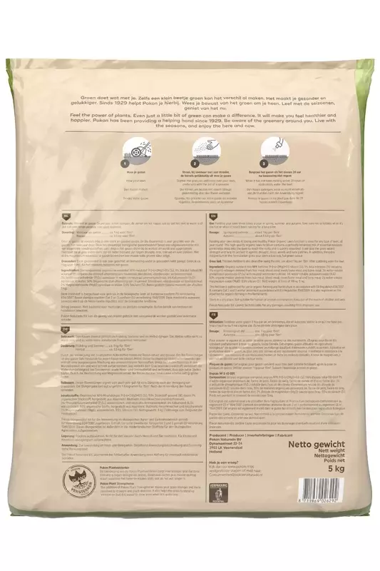 Door je gazon te voeden krijg je een sterk en gezond gazon. Pokon Bio gazonmest is het hele jaar door geschikt voor elk gazon. Deze hoogwaardige biologische gazonmeststof bevat een uitgebalanceerde mix van essentiële voedingsstoffen. De gazonvoeding zakt diep het gazon in en komt hierdoor dicht bij de wortels die de voeding snel opnemen. Hierdoor zal je gras extra sterk zijn en beter bestand zijn tegen droogte, mos, onkruid en kale plekken. Bovendien bevat deze gazonmest extra magnesium waardoor je gazon een mooie volle groene kleur krijgt. Pokon Bio gazonmest bevat een plantversterkend mineraal (Si). De toevoeging van deze Pokon plantversterker zorgt voor steviger gras dat beter bestand is tegen droogte en ziektes. Daarnaast zal het gras mooier rechtop staan waardoor het beter te maaien blijft, ook als het wat langer is.