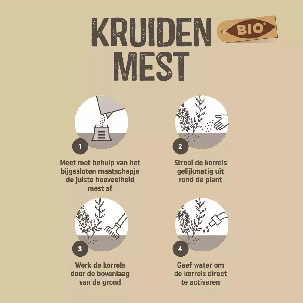 Pokon Bio Kruiden Mest is een biologische meststof speciaal ontwikkeld voor sterke kruidenplanten. Deze meststof bevordert niet alleen de groei, maar verhoogt ook de weerstand van de planten tegen ziektes en plagen, terwijl het de aroma's en smaken van kruiden versterkt. Geniet van een heerlijk geurende tuin en smaakvolle kruiden met deze 100% natuurlijke meststof.