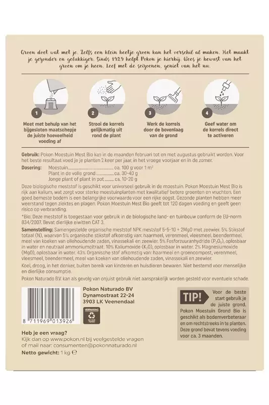 Schrijf zelf een recensie over "Pokon Bio Moestuin Mest 1kg"