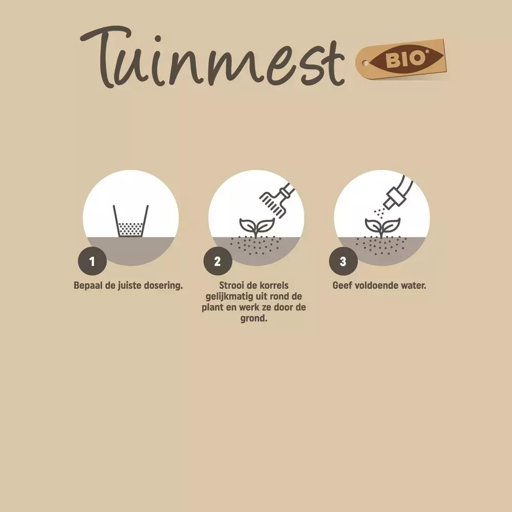 - Planten in de volle grond: 40-50 gram tuinmest.