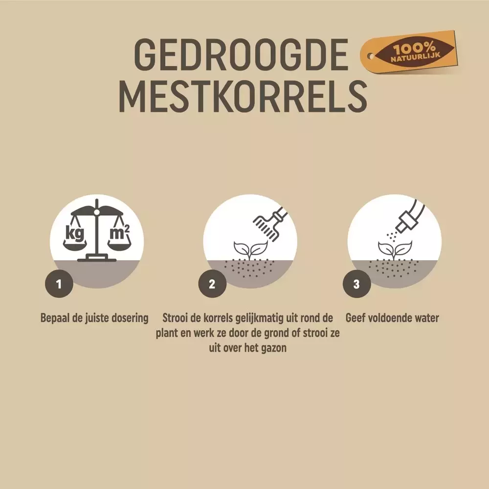 Wil je een goede bodem voor je planten? Gebruik dan de gedroogde mestkorrels van pokon! Pokon gedroogde mestkorrels is een natuurlijke meststof die de structuur van jouw potgrond verbetert. Het is een 100% organisch product dat het hele jaar gebruikt kan worden in zowel de border, het gazon als de moestuin. De in de korrels aanwezige voeding komt geleidelijk vrij, waardoor het de grond vruchtbaar maakt. Door de samenstelling is de kans op verbranding minimaal.