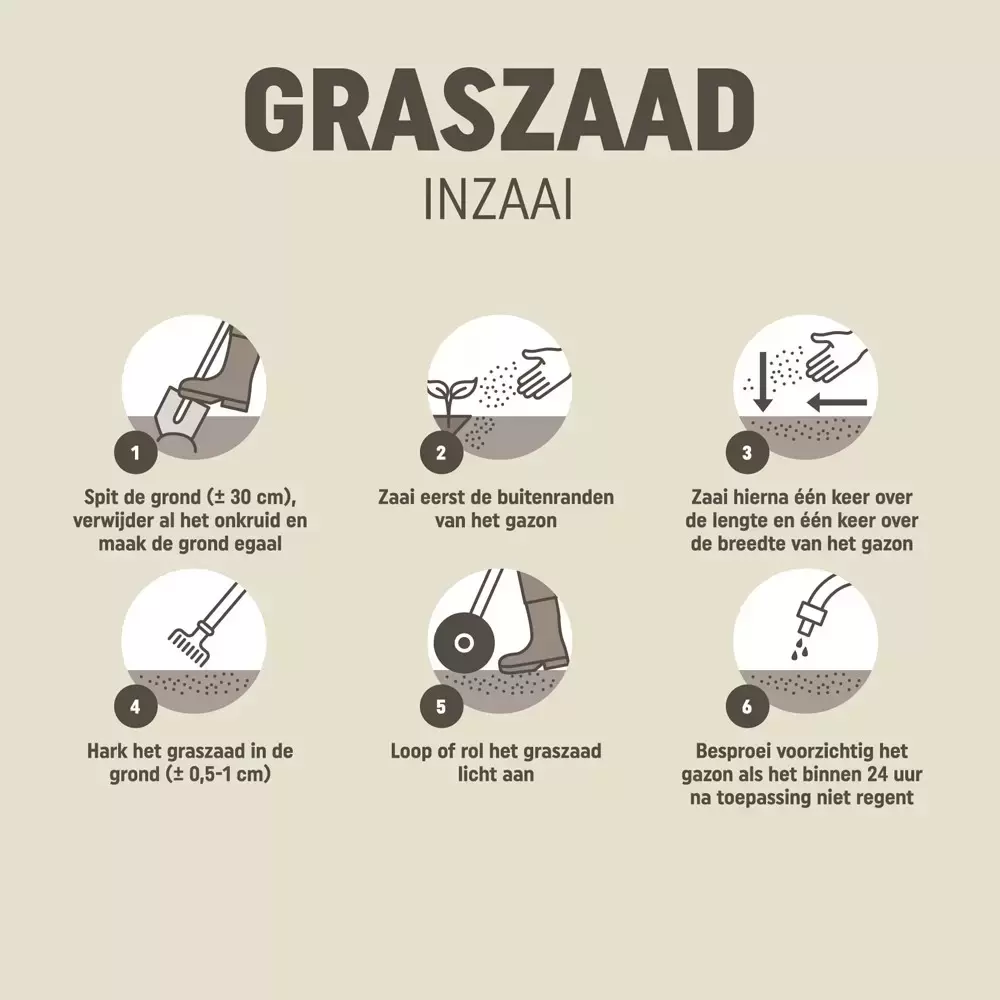 Graszaad Inzaai is geschikt voor het inzaaien van een nieuw gazon. Het graszaad is uniek vanwege het zelfherstellende vermogen; het creëert (horizontale) uitlopers door middel van RPR technologie. Hierdoor ontstaat een ijzersterk gazon. RPR wordt gebruikt in de professionele sector voor onder andere voetbalvelden en heeft een hoge betredingstolerantie. Graszaad Inzaai met RPR is uniek op de consumentenmarkt!