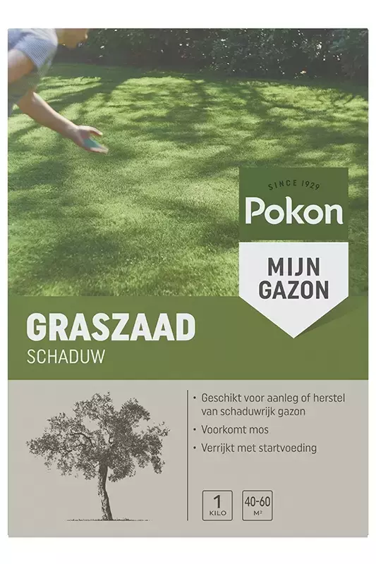 Pokon Graszaad Schaduw 1kg is geschikt voor aanleg of herstel van schaduwrijk gazon, voorkomt mos en is verrijkt met startvoeding. Geschikt voor 40-50m²