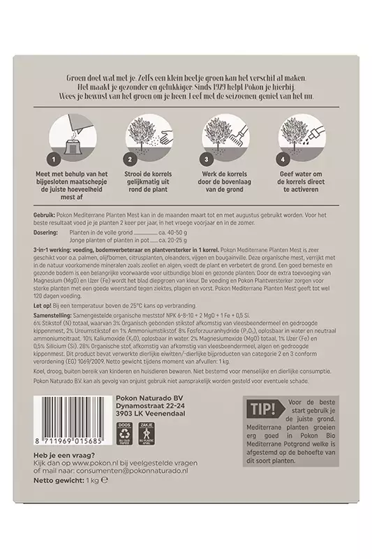 Schrijf zelf een recensie over "Pokon Mediterrane plantenmest 1kg"