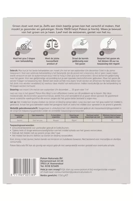 Schrijf zelf een recensie over "Pokon Mos weg! 50 m2 1750g"