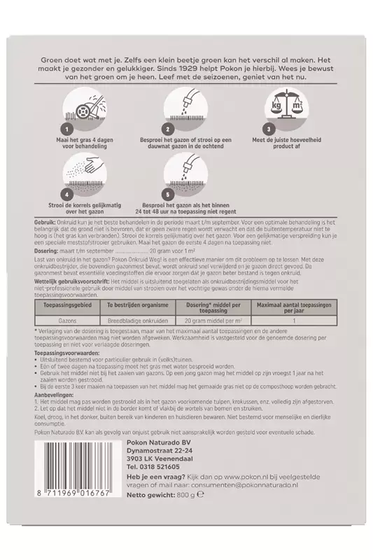 40m2 800gr niet genoeg? We hebben ook Pokon Onkruidweg in 80m2 1600gr en 120m2 2400 gr