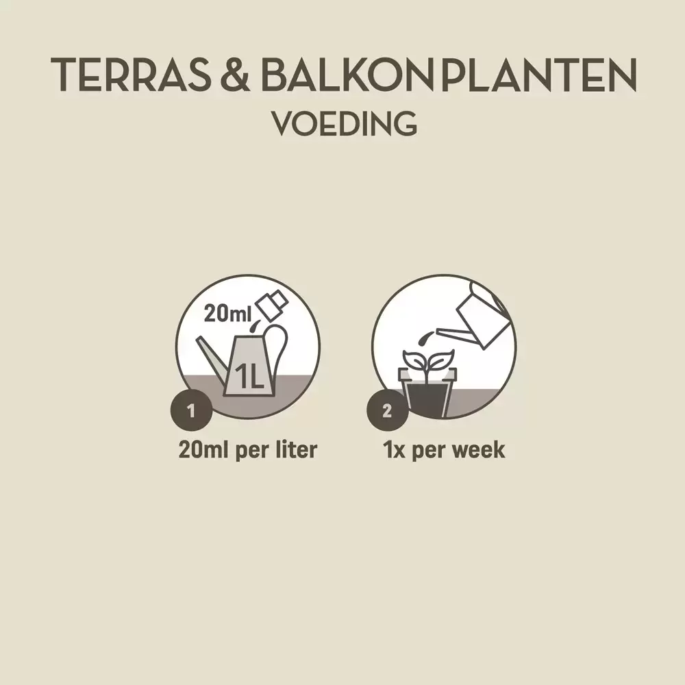 Voed je terras- en balkonplanten eenmaal per week van maart tot en met september voor optimale resultaten.