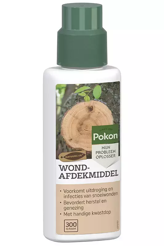 Heb je je fruit- en/of sierbomen gesnoeid? Pokon Wondafdekmiddel droogt op als een elastische film die de snoeiwond beschermt tegen uitdroging en de genezing bevordert. Dit middel voorkomt infecties door schimmels, bacteriën en virussen. Het hecht zich stevig aan het hout, loopt niet uit bij hitte en brokkelt of scheurt niet bij kou. Let op: kleurverandering is mogelijk, aangezien het een natuurproduct betreft.