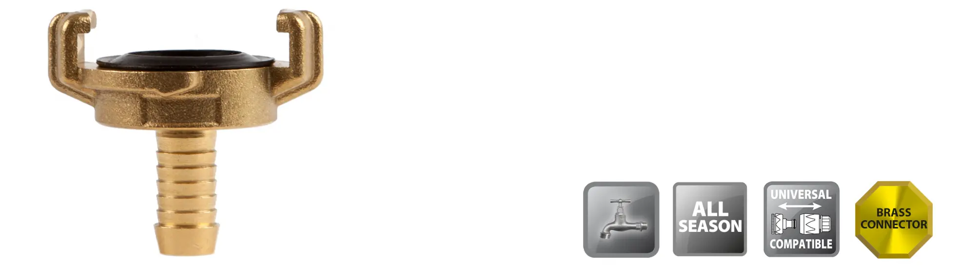 Stevige klauwkoppeling van messing voor 1/2" slangen met 13 mm binnendiameter. Ideaal voor lucht- en waterleidingen, eenvoudig te koppelen.